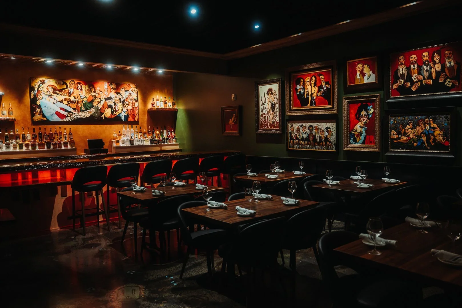 The interior of our private dining room raises the bar on our in-house Art Gallery with many original works from featured artist Todd White, all of which are available for purchase.